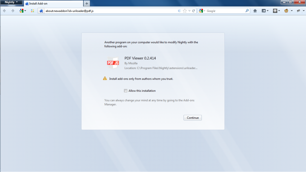 pdf.js ahora viene con Firefox 14, pero ha estado disponible como una extensión desde hace un tiempo, lo que significa que se puede instalar en Firefox 11 y superiores.
